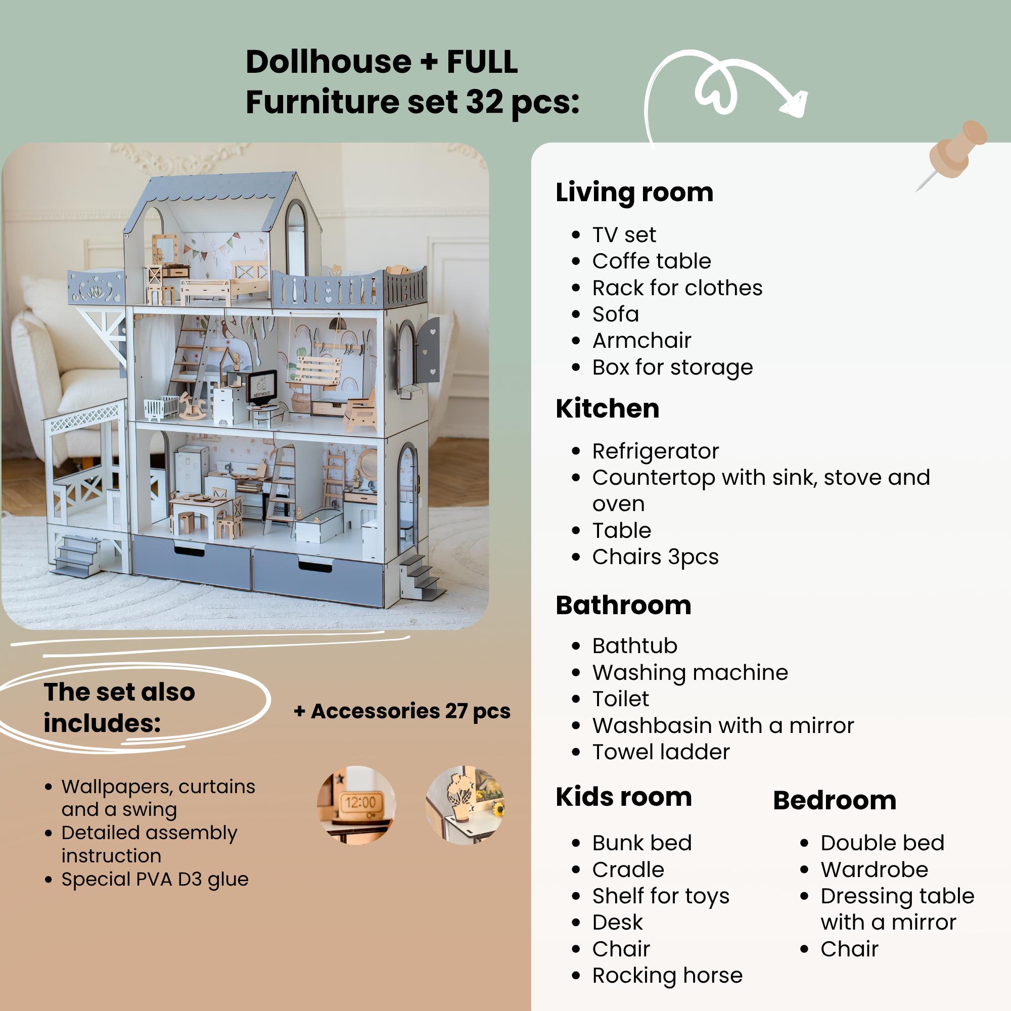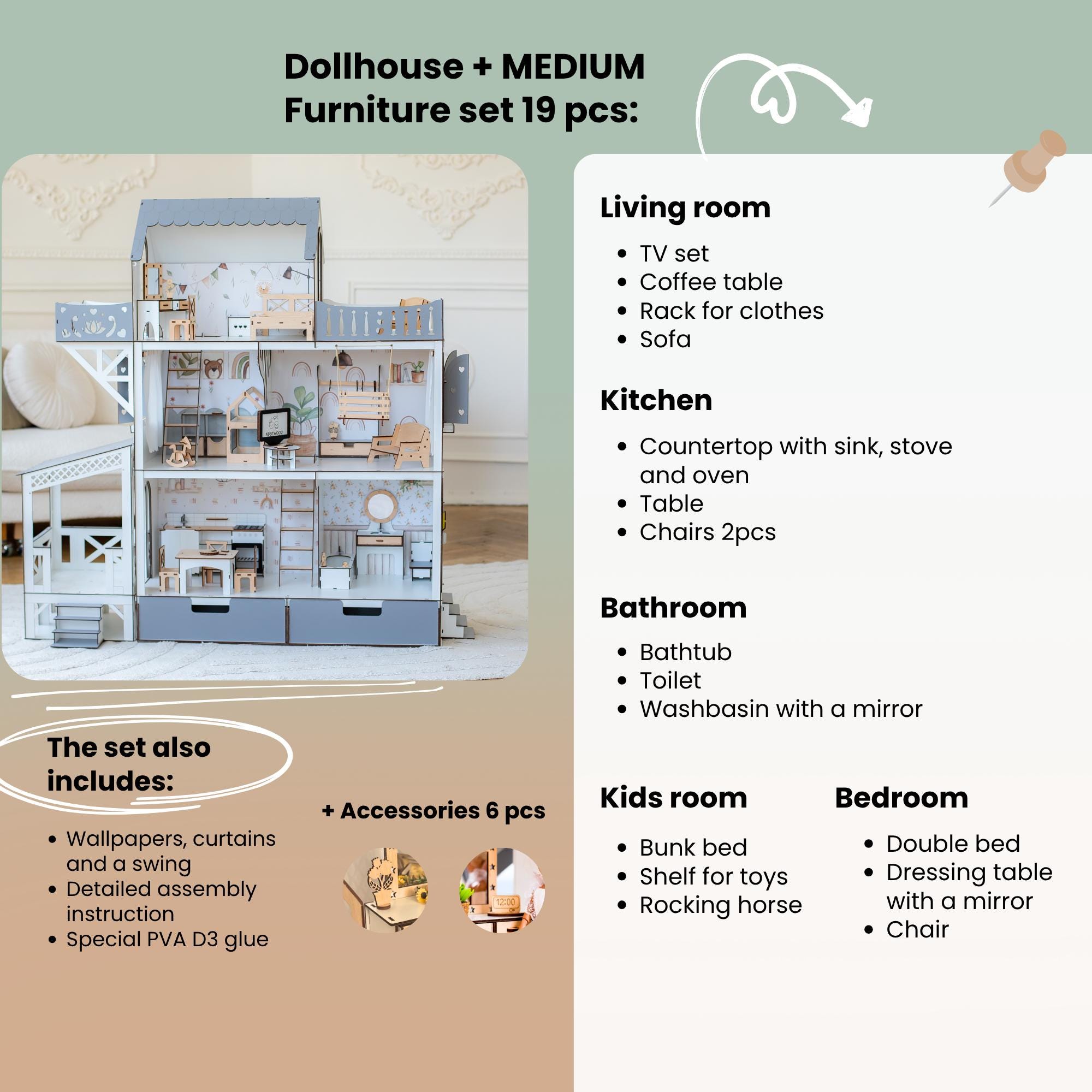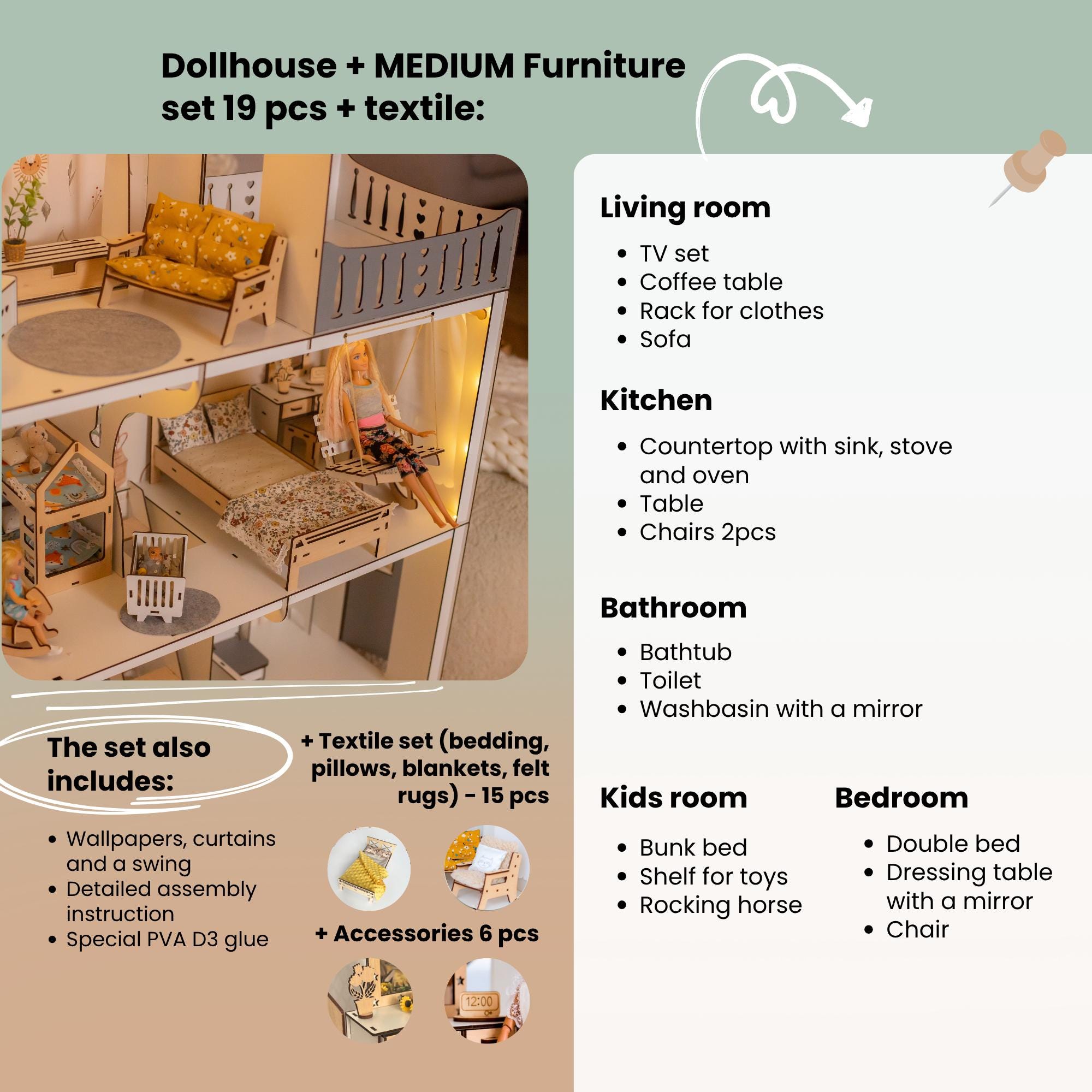 It is my first Dollhouse, I fell in love with the picture and wasn't disappointed. The assembly: I can't judge, my son did it. Thank goodness. Sturdy, large, excellent for 11 1/2 in. Dolls. Very happy, worth every penny to me, it's a great stress reliever.
